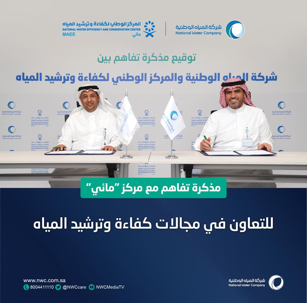 وقع مذكرة التفاهم المهندس نمر بن محمد الشبل الرئيس التنفيذي لشركة المياه الوطنية، والمهندس فهاد بن حويزي الدوسري الرئيس التنفيذي للمركز الوطني لكفاءة وترشيد المياه.