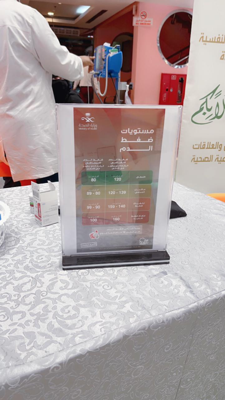 فعل مجمع إرادة والصحة النفسية بجدة فعالية اليوم العالمي لإرتفاع ضغط الدم بالتعاون مع جمعية عيون جدة الخيرية بهدف رفع مستوى الوعي والإدراك لدى كافة شرائح المجتمع حول بعض التعريفات والمفاهيم المتعلقة به حيث يعتبر مرض شائع يحدث عند حصول ضغط مستمر مع جدران الشرايين وعلى مدى طويل ويعد مرضاً لأنه يزيد من ضغط الدم إلى القلب عبر الأوعية الدموية مما يعرضهم لخطر الإصابة بالأمراض والجلطات الدموية
