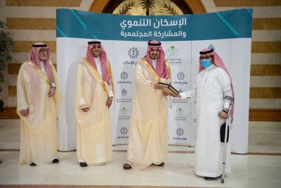 سلم صاحبُ السموِّ الملكي الأمير بدر بن سلطان، نائب أمير منطقة مكة المكرمة، 525 وحدة سكنية للأسر الأشد حاجة من مستفيدي برنامج الإسكان التنموي بالمنطقة وسكان الأحياء العشوائية بجدة، وذلك بالتزامن مع انطلاق حملة اكتتاب جود الإسكان الخيري مطلع شهر رمضان المبارك، بحضور معالي نائب وزير الشؤون البلدية والقروية والإسكان المهندس عبدالله البدير.