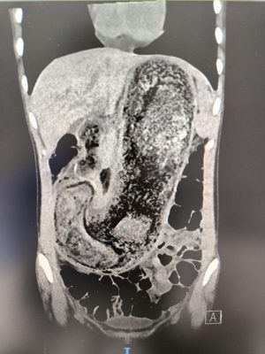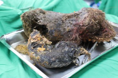 وفي التفاصيل التي سردها الدكتور عبد الله دلبوح أكد أنه قد تم عمل العملية بالمنظار الجراحي , ومن ثم عمل فتحة في جدار البطن وجدار المعدة , واستخراج هذه الكتلة الضخمة والتي بلغ وزنها ما يقارب ٣ كيلو