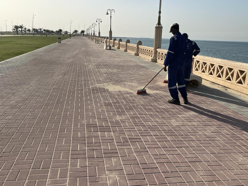كما قامت البلدية، بتجهيز وتنظيف الكورنيش و(7) حدائق عامة من صيانة الإنارة والمزروعات وجميع الخدمات بما فيها دورات المياه بعدد (10) دورات وصيانة ألعاب الأطفال وتسوية التربة المحيطة بملاهي الأطفال في الحدائق، بالإضافة الي تكثيف الجولات الميدانية للأمن والسلامة، بمكتب خدمات الكورنيش على الممتلكات العامة والخدمات، كما تم ترتيب المسطحات الخضراء بالميادين وتسوية وتنظيف التربة، ومتابعة الخدمات بالكورنيش، وغسيل المجسمات بالميادين العامة، ومتابعة شبكات الري، وتنظيف وتجوير جور النخيل والأشجار والأسجية النباتية.