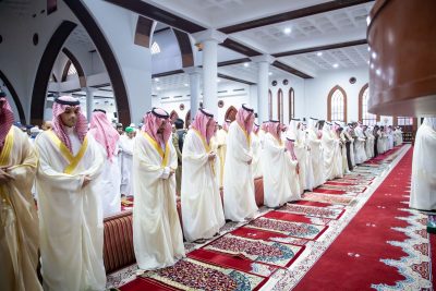 أدى صاحب السمو الملكي الأمير سعود بن نايف بن عبدالعزيز أمير المنطقة الشرقية صباح اليوم الجمعة صلاة عيد الفطر المبارك مع جموع المصلين في جامع خادم الحرمين الشريفين بالدمام .
