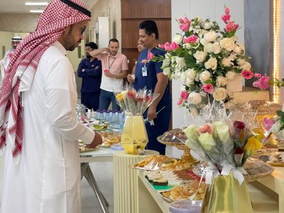 وتبادل الجميع التهاني والتبريكات بهذه المناسبة السعيدة وسط أجواء من الفرح والبهجة والسرور، ونقل الدكتور المالكي لمنسوبي المستشفى تهاني وتبريكات مدير عام الشؤون الصحية بمنطقة تبوك الدكتور غرم الله الغامدي بمناسبة العيد ومشيداً بجهود العاملين المكلفين من منسوبي المستشفى خلال شهر رمضان وإجازة العيد متمنياً لهم التوفيق والنجاح .