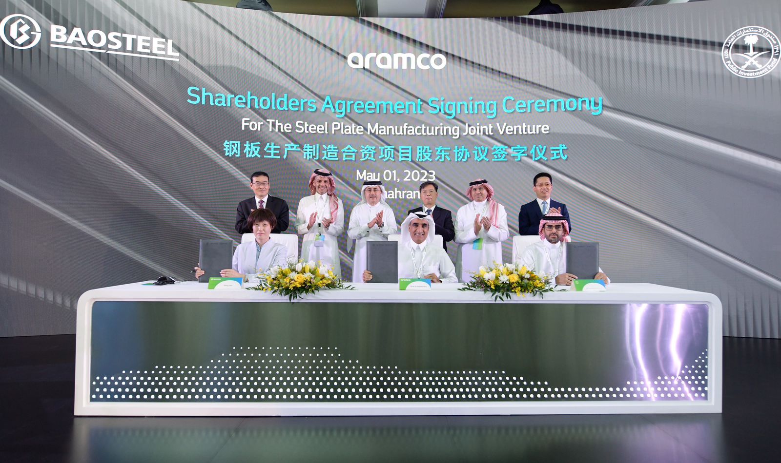 أعلنت كل من أرامكو السعودية، الشركة الرائدة عالميًا في مجال الطاقة والكيميائيات، وشركة باوشان للحديد والصلب المحدودة (باوستيل)، تكتل الصُّلب الرائد في العالم ومقرها الصين، وصندوق الاستثمارات العامة، توقيع اتفاقية مساهمين لإنشاء أكبر مجمع متكامل لتصنيع الألواح الفولاذية بالمملكة.