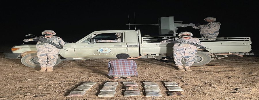 قبضت الدوريات البرية لحرس الحدود في قطاع سقام بمنطقة نجران، على مخالف لنظام أمن الحدود من الجنسية الإثيوبية؛ لمحاولته تهريب مادة الحشيش المخدر.