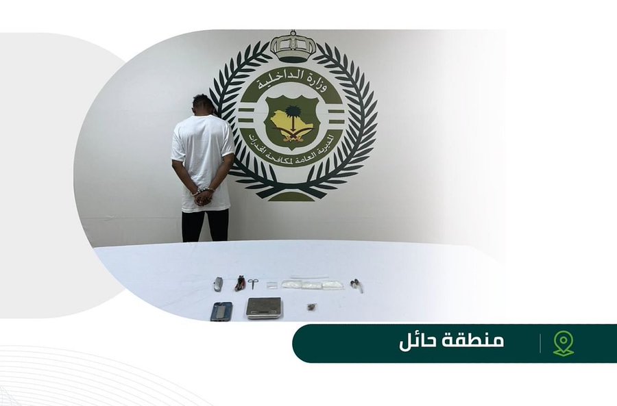 قبضت المديرية العامة لمكافحة المخدرات على مواطن بمنطقة حائل، لترويجه مادة الميثامفيتامين المخدر (الشبو) ومادة الحشيش المخدر.