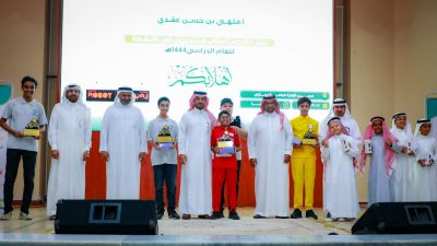 وكرّم “عقدي” الطلاب المتميزين في الأنشطة الطلابية لعام 1444هـ؛ حيث تم تكريم الفائزين في مسابقة القرآن الكريم والسنة النبوية وعددهم 10 طلاب، والفائزين في مسابقة موهوب وعددهم 7 طلاب، والفائزين في مسابقة بيبراس وعددهم 25 طالبًا، والفائزين في مسابقة كانجارو وعددهم 17 فائزًا، والفائزين بالمركز الأول على مستوى المملكة في العرض الأدائي في أولمبياد اللغة الإنجليزية وعددهم 6 طلاب، والحاصلين على المركز الأول على مستوى الإدارة في أولمبياد اللغة الإنجليزية وعددهم 6، والحاصلين على المركز الأول في الروبوت وعددهم 3 طلاب، والمتميزين في مسابقة الإلقاء وعددهم 22 طالبًا.