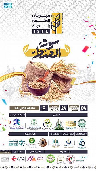 تنطلق غداً فعاليات مهرجان الحنطة بالفوارة 1444هـ الذي تنظمه أمانة منطقة القصيم، ممثلة ببلدية الفوارة بالشراكة مع فرع وزارة البيئة والمياه والزراعة ، والجمعية التعاونية بالفوارة.