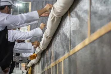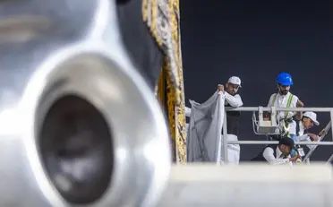 بدأت الرئاسة العامة لشؤون المسجد الحرام والمسجد النبوي مساء البارحه، برفع الجزء السفلي من كسوة الكعبة المشرفة بمقدار ثلاثة أمتار تقريباً، وتغطية الجزء المرفوع بإزار من القماش القطني الأبيض بعرض مترين تقريباً من الجهات الأربع، وذلك كما جرت عليه العادة السنوية استعداداً لموسم حج هذا العام.