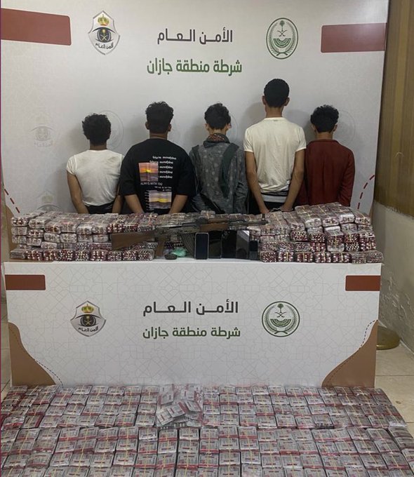 ألقت إدارة التحريات والبحث الجنائي في محافظة العيدابي بمنطقة جازان القبض (3) مخالفين لنظام أمن الحدود من الجنسية اليمنية ومواطنين لترويجهم (91,802) قرص خاضع لتنظيم التداول الطبي ومادة الحشيش المخدّر، وضبط بحوزتهم سلاح ناري وهواتف متنقلة، وجرى توقيفهم واتخاذ الإجراءات النظامية بحقهم، وإحالتهم إلى جهة الاختصاص.