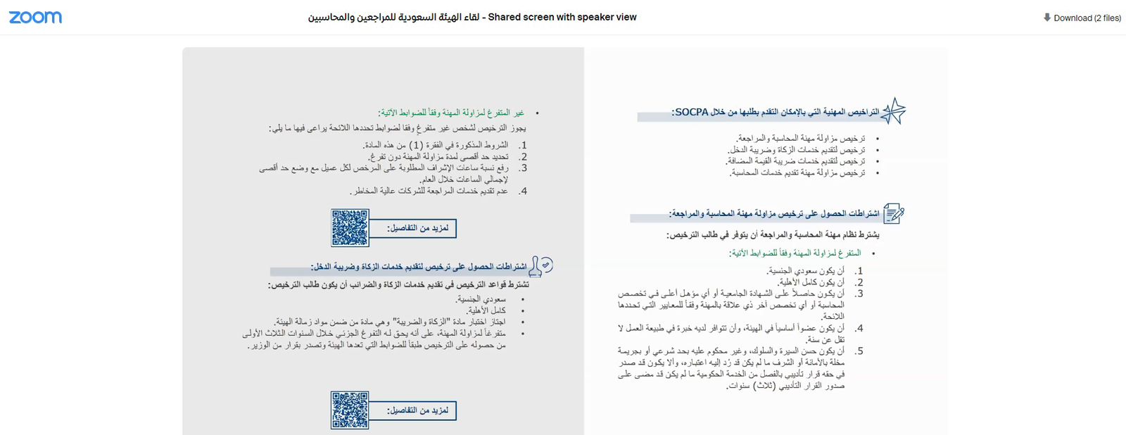 استعرض مراقب جودة الأداء المهني بالهيئة السعودية للمراجعين والمحاسبين متعب السيحاني جملة من الخدمات التي تقدمها الهيئة لتطوير مهنتي المحاسبة والمراجعة، والتي تدور حول التأهيل والأشراف والتوعية، ذلك في لقاء نظمته غرفة الشرقية ممثلة بمركز تمكين المرأة الأربعاء 14/يونيو/2023 تحت عنوان (الشهادات والتراخيص المهنية المحاسبية).