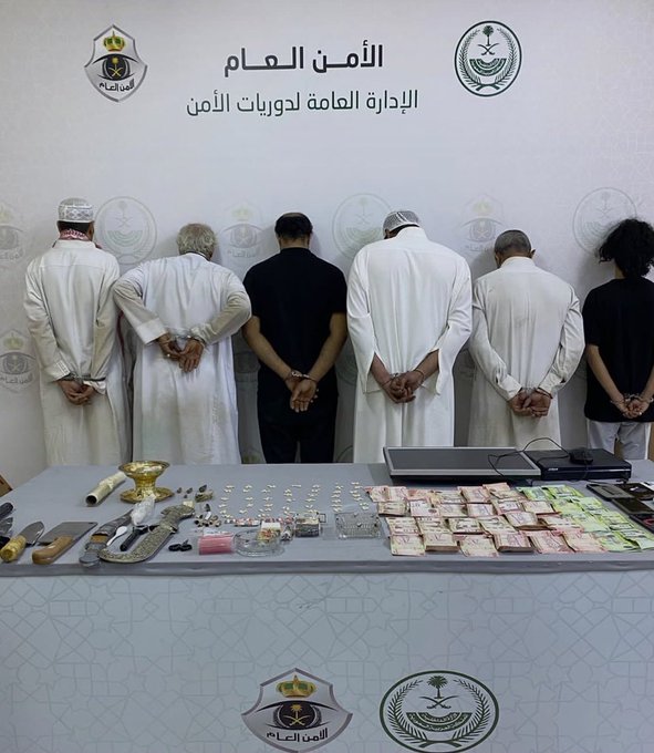 قبضت دوريات الأمن العام بمنطقة تبوك على (6) مواطنين اتخذوا منزلًا مزودًا بكاميرات مراقبة، وكرًا لترويج مادتي الإمفيتامين والحشيش المخدرتين، وضُبِطَ بحوزتهم ذخيرة حية وأسلحة بيضاء وهواتف متنقلة ومبلغ مالي.