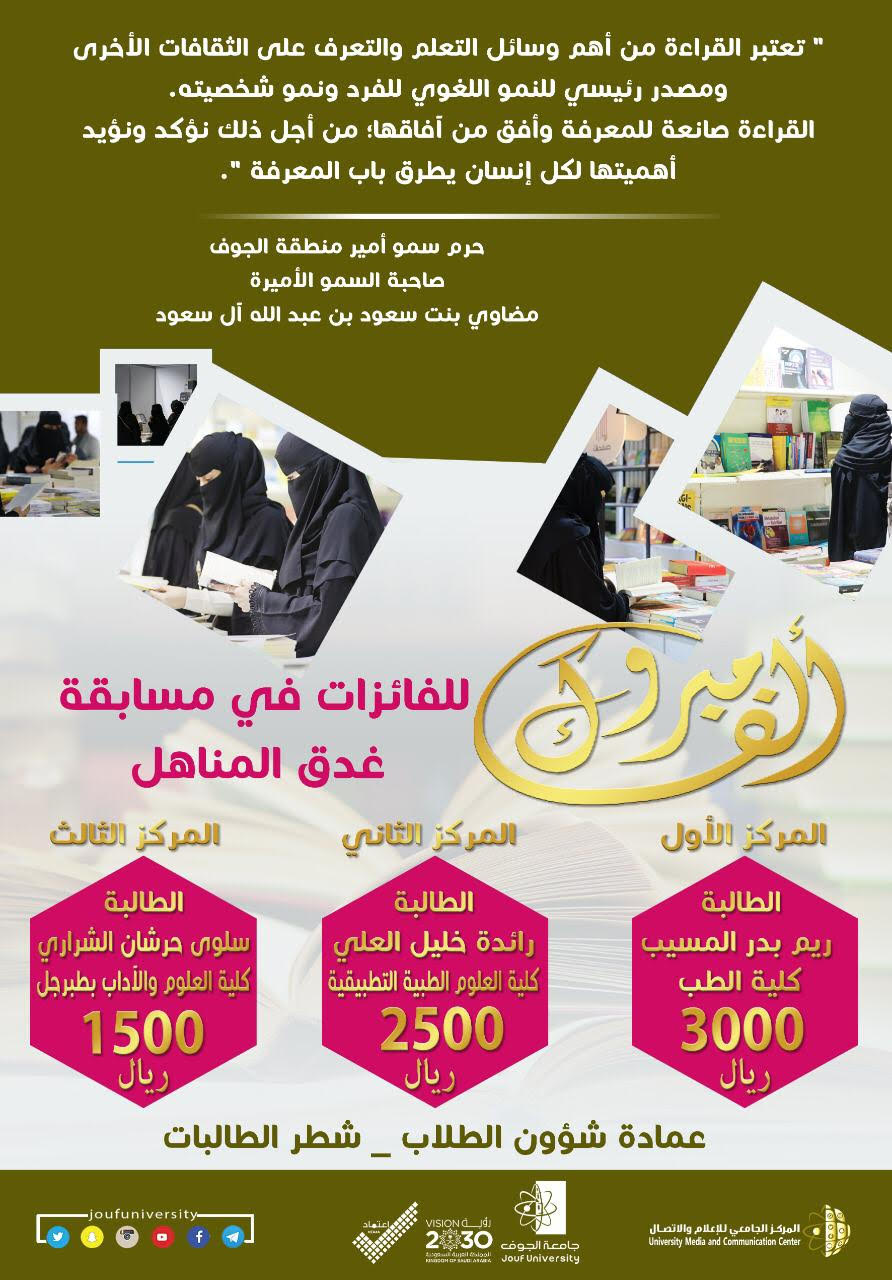 جامعة الجوف تختتم مبادرة (غدق المناهل) للقراءة عن بُعد بفوز ثلاث طالبات