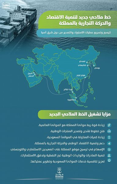 ويُعد هذا الربط المباشر بين الموانئ السعودية وموانئ دول شرق آسيا خلال هذا الوقت الحرج للاقتصاد العالمي؛ تأكيداً على صلابة الاقتصاد السعودي ومتانة سلاسل الإمداد في المملكة.