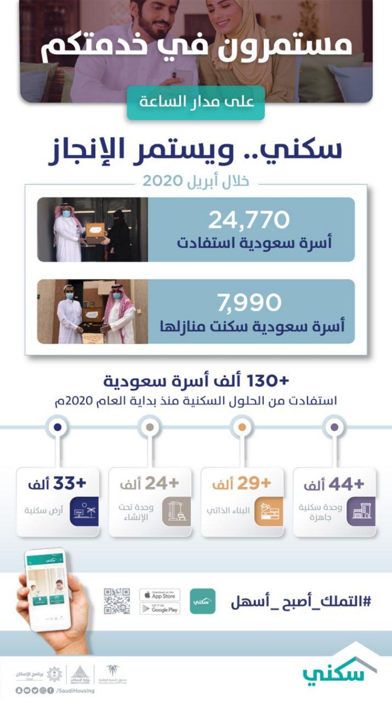 أخبار محلية > سكني: (24 ألف) أسرة استفادت خلال أبريل الماضي بينها (8 آلاف) سكنت منازلها