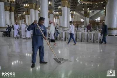 كثفت وكالة شؤون المسجد النبوي ممثلة في إدارة التطهير من جهودها، وذلك تزامنًا مع وصول الحجاج والزائرين للمسجد النبوي وتجهيزه لهم ليؤدوا عبادتهم بكل يسر وسهولة.