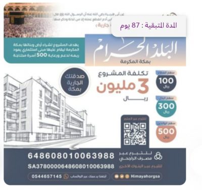 ومن أبرز وآخر مشاريعها مشروع البلد الحرام الخيري الذي جاء بتكلفة ٣٠٠ مليون ريال سعودي، وهو يهدف إلى شراء أرض وبناتها بمكة المكرمة، ليقام عليها مبنى استثماري يعود ريعه لدعم ورعاية ٥٠٠ أسرة محتاجة.