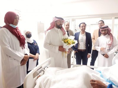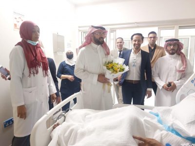 من جانبه قام المدير التنفيذي بمستشفى أبها الخاص العالمي الدكتور خالد الثميري بزيارة المريض للاطمئنان عليه ومتابعة الحالة مع الفريق الطبي وبرفقه المدير الطبي الدكتور سعيد آل ناصر ومدير إدارة التسويق الدكتور أحمد سعيد .
