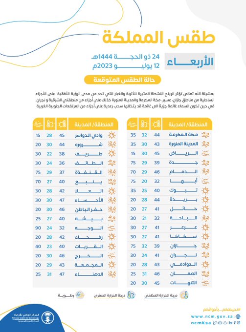 47 مئوية.. #الأحساء و #الدهناء أعلى درجة حرارة بالمملكة و #أبها الأدنى.