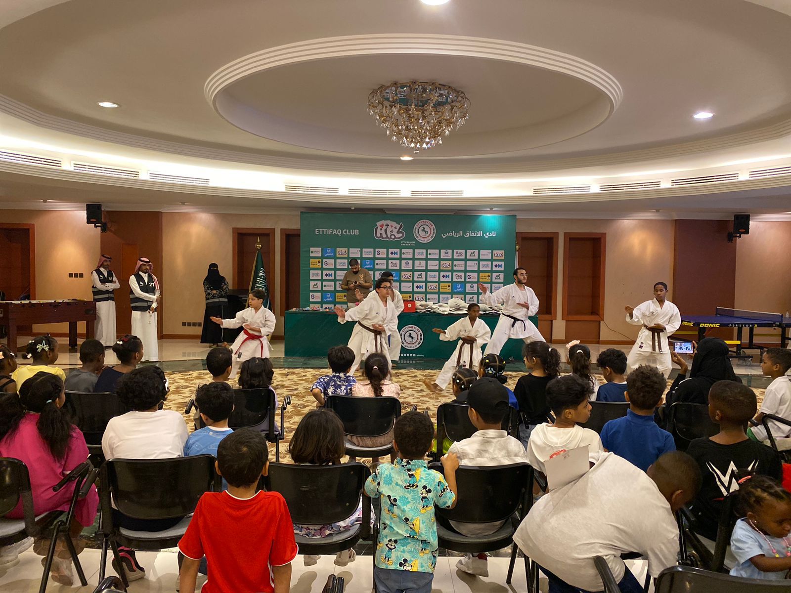حيث تخلل الحفل إقامة عددٍ من الفعاليات، والتي تنوَّعت بين: إقامة المسابقات التحفيزية، وتوزيع الجوائز على الفائزين فيها، وإشراك الأطفال في التعريف بلعب: المبارزة، والبلياردو، وتنس الطاولة، وإقامة جولة تعريفية في مرافق النادي وعرض للجمباز، وفي الختام توزيع هدايا العيد الخاصة من متجر نادي الاتفاق لكافة الحاضرين من الأمهات والأبناء.
