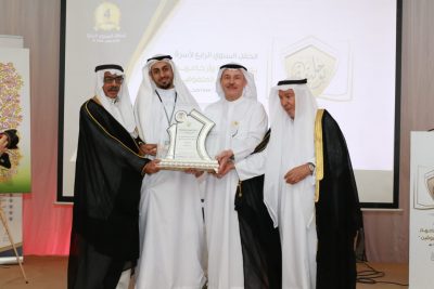 وخلاال الحفل سلم الدكتور – إحسان بن علي بوحليقة الدكتور عبدالاله محمد نور بوحليقة جائزة التميز تكريماً لما حققه من تميز لتحدي الصعوبات.