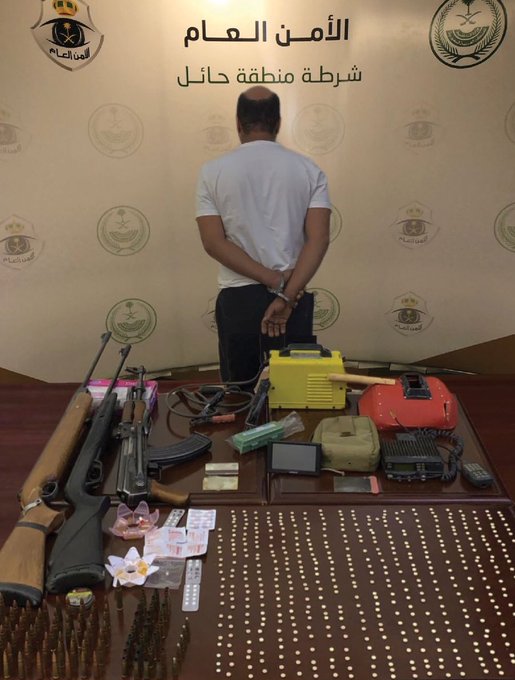قبضت شرطة منطقة حائل على مواطن لترويجه مادة الإمفيتامين المخدّر، وضبطت بحوزته أسلحة نارية وذخيرة حية.