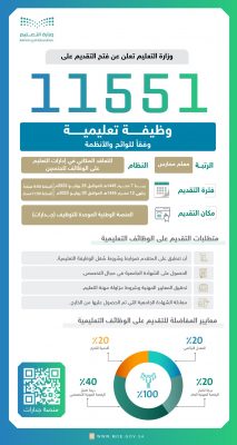 ويمكن الاطلاع على المزيد من المعلومات عبر بوابة الوزارة التعليم https://www.moe.gov.sa/ar/hr/Pages/default.aspx.