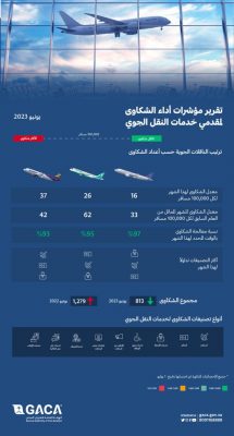 وكشفت الهيئة عن إجمالي الشكاوى التي رُفعت من المسافرين على الناقلات الجوية خلال شهر يونيو الماضي، التي بلغت (٨١٣) شكوى، ورصدَ المؤشرُ أنَّ الخطوطَ الجويةَ السعوديةَ جاءت أقلّ شركات الطيران شكاوى بواقع (١٦) شكوى لكل 100 ألف مسافر، وبنسبة معالجة للشكوى بالوقت المحدد لشهر يونيو وصلت إلى 97%، بينما حلَّ طيران ناس ثانياً بواقع (٢٦) شكوى لكل 100 ألف مسافر، وبنسبة معالجة للشكوى بالوقت المحدد وصلت إلى ٩٥%، وجاء ثالثًا طيران أديل حيث وصل عدد الشكاوى إلى (٣٧) شكوى لكل 100 ألف مسافر وبنسبة معالجة للشكوى بالوقت المحدد وصلت إلى ٩٣%، فيما جاء أكثر تصنيفات الشكاوى تداولًا لشهر يونيو عن الرحلات أولًا، ثم التذاكر، ثم خدمات الأمتعة.