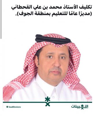 تكليف الأستاذ محمد بن علي القحطاني (مديرًا عامًا للتعليم بمنطقة الجوف).