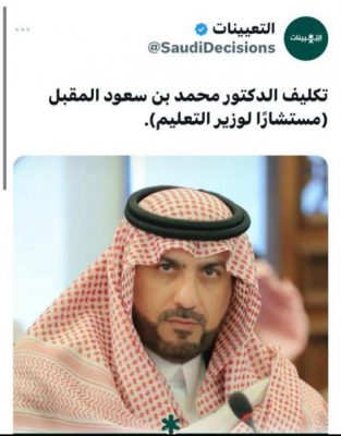 تكليف الدكتور محمد بن سعود المقبل (مستشارًا لوزير التعليم)