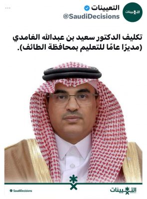 تكليف الدكتور سعيد بن عبدالله الغامدي (مديرًا عامًا للتعليم بمحافظة الطائف).