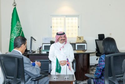 استقبل صاحب السمو الملكي الأمير تركي بن طلال، أمير منطقة عسير، بمركز السودة التابع لديوان إمارة المنطقة غرب مدينة أبها، القنصل العام البريطاني السيدة سيسيل البليدي، يرافقها المسؤول التجاري بالقنصلية العامة البريطانية عبدالله العمودي.