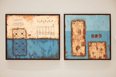 وإحدى هذه الأعمال لوحة “أبواب وشبابيك”، وهي عبارة عن لوحة مرسومة بالألوان الزيتية الزاهية لأبواب ونوافذ تحرك مشاعر الحنين لدى المُشاهد، حيث كانت تتواجد في الشوارع والبيوت القديمة في مدينة جدة، ومشهد الحنين هذا كان معروفاً لأي أحد عاش خلال فترة الستينات والسبعينات في جدة. تقول فنانة اللوحة خلود العمري: “هذه البيوت جزء من الأرض يجب أن تترسخ في الذاكرة الفنية كي لا ننسى كيف كنا وكيف صرنا”، وتركز الفنانة في أعمالها على تسليط الضوء على المنازل الشعبية في وسط وجنوب جدة. وتضيف قائلة: “جاءت فكرة لوحة “أبواب وشبابيك” من حكايا الجدات والآباء والأمهات ومن صور الذكريات التي يحتفظون بها من أيام البساطة”.