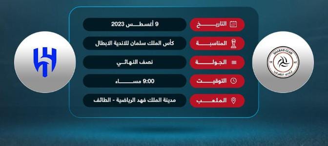 اللقاء سيقام على ملعب مدينة الملك فهد الرياضية بالطائف في تمام الساعة 9 مساء، وسيكون اللقاء منقول مباشرة على قنوات SSC الرياضية.