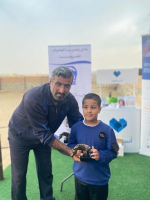 وفي نهاية البرنامج سلم مدير نادي ومدرسة العاديات للفروسية بآل سرحان الأستاذ ناصر السرحاني أبو ماجد أطفال التوحد جوائزهم