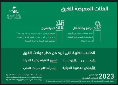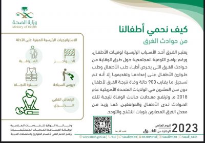 دشن مجمع إرادة والصحة النفسية لخدمات إرادة فعالية الغرق التي تُعنى بكيفية حماية الأبناء والأطفال من حوادث الغرق الذي يعتبر أحد الأسباب الرئيسية في وفياتهم ، ورغم برامج التوعية المجتمعية حول طرق الوقاية من حوادث الغرق إلا أنه تم تسجيل مايقارب ٩٠٠ حالة وفاة نتيجة غرق الأطفال دون سن العشرين في الولايات المتحدة الاميركية عام ٢٠١٨م وينصح أطباء الأسرة والمجتمع توخي الحيطة والحذر وتعليم أبنائهم أسبابا السباحة كأحد الحلول المناسبة لحمايتهم بعد عناية الله من الغرق.
