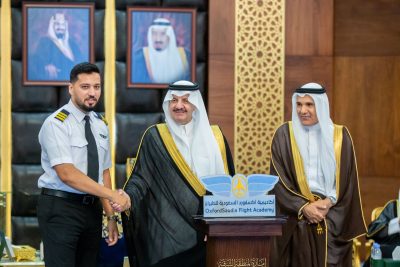 وقال سموه ” نفخر جميعاً بتميز أبنائنا وبناتنا في جميع المجالات ولا شك أن مجال النقل الجوي من أهم المجالات التي تحرص القيادة رعاها الله على تطويره والاستثمار فيه، من خلال تدريب شباب وشابات الوطن وتأهيلهم ليكونوا قادرين ومؤهلين للدخول في هذا السوق الواعد” وخاصة مهنة الطيار التي لا زال سوق العمل في المملكة في حاجة لتوطينها في ظل التوسع الكبير في منظومة النقل وفق الاستراتيجية الوطنية للنقل والخدمات اللوجستية ، وفي ظل التوسع في إنشاء المطارات وزيادة الطلب على النقل الجوي وانشاء شركات طيران حديثة في المملكة .