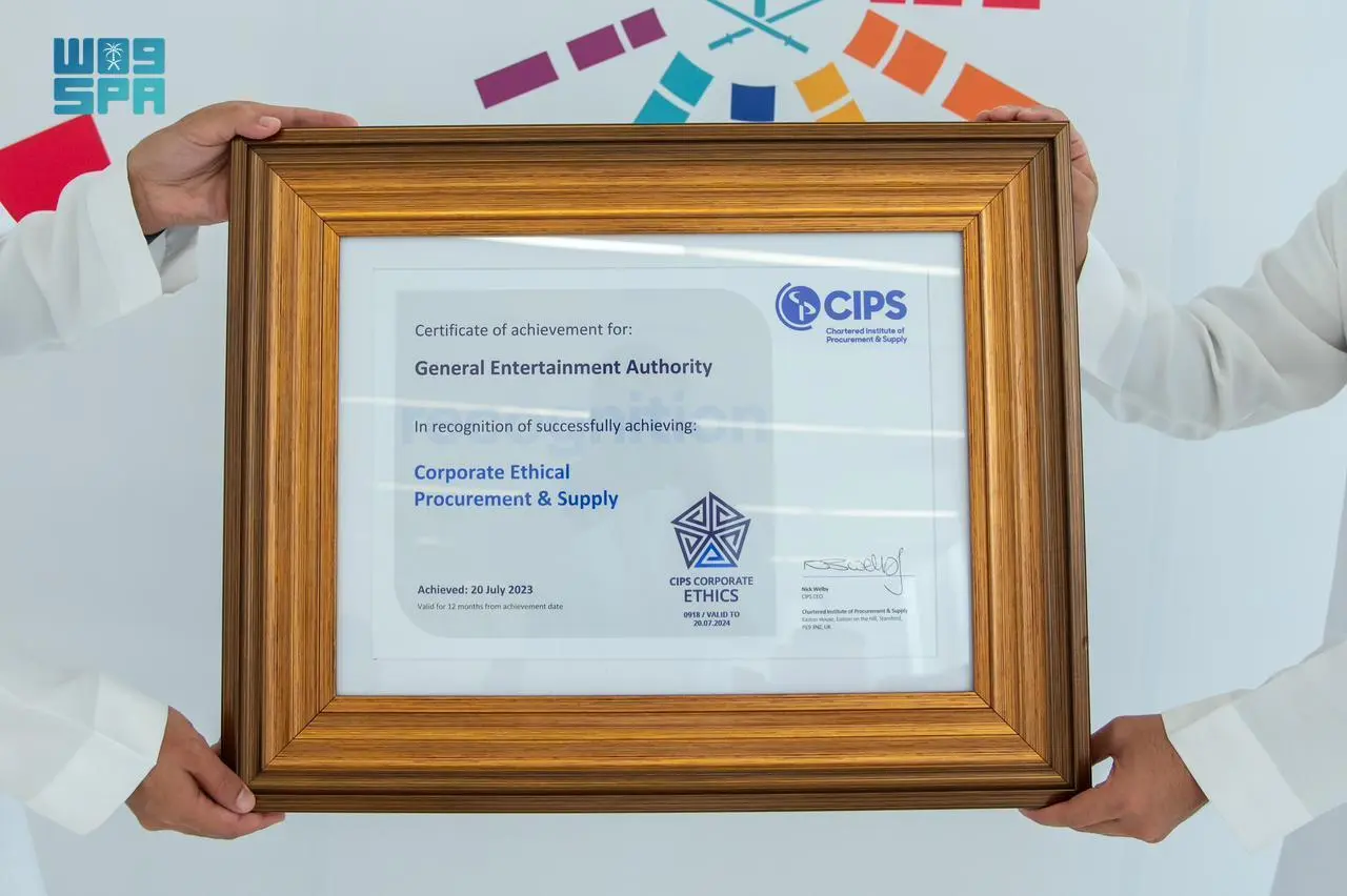 “هيئة الترفيه” تحصل على الشهادة العالمية لأخلاقيات المشتريات
