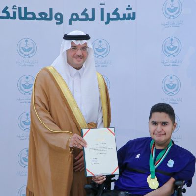 كرَّم صاحب السمو الملكي الأمير سعود بن طلال بن بدر محافظ الأحساء بمجلس سموّه بمقر المحافظة اليوم ” الأربعاء” ، عددًا من لاعبي نادي ذوي الإعاقة بالأحساء ، وذلك بمناسبة فوزهم بالميداليات في “دورة الألعاب العالمية الصيفية السادسة عشرة للأولمبياد الخاص في برلين 2023 ” مع المنتخب السعودي، بالإضافة إلى تحقيقهم بطولة غرب آسيا الثالثة للبوتشيا التي أقيمت بالأردن، وكأس بطولة تبوك الأولى الخليجية “للعبة البوتشيا”، وذلك بحضور مدير مكتب وزارة الرياضة بالأحساء المكلف الأستاذ عبداللطيف العرادي، ورئيس نادي ذوي الإعاقة بالأحساء، الأستاذ خالد القرينيس.