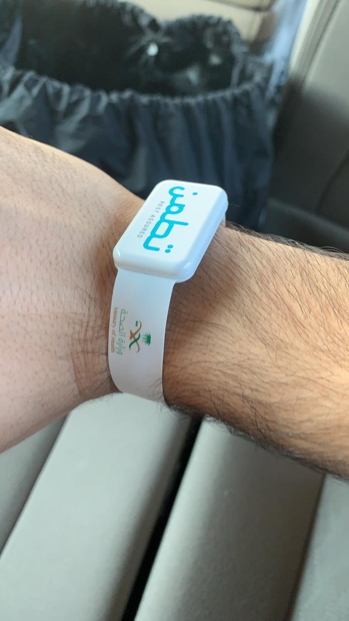 أيضا جوال الشخص يجب ان يكون معه وقريب منه علئ نطاق ١٠ متر، إذا ابتعد اكثر من ذالك يرسل تنبية بانه ابتعد عن النطاق المسموح به واذا لم يلتزم يتم إرسال رسالة تنبية مباشرة للوزارة عبر النظام.