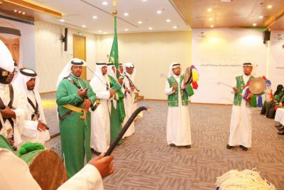 وتضمنت فعالية الاحتفاء العرضة النجدية . ورفع الدكتور الشهراني التهنئة لخادم الحرمين الشريفين الملك سلمان بن عبدالعزيزآل سعود ـ حفظه الله ـ وسمو ولي عهده الأمين وإلى الشعب السعودي بمناسبة اليوم الوطني ومرور 93 عاماً على توحيد المملكة، مؤكداً أن الخدمات الصحية في المملكة تشهد نقلة نوعية في مستوى الخدمات، متطلعا إلى مزيد من التقدم والرقي في الخدمات بإذن الله مستقبلاً لتتواكب مع تطلعات قيادتنا الرشيدة .