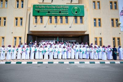 احتفى فرع وزارة البيئة والمياه والزراعة بمنطقة عسير باليوم الوطني ال 93 بمقر الفرع بحضور المدير العام المهندس احمد بن محمد آل مجثل ونائبه المهندس علي بن سيف القحطاني ومدراء الادارات والاقسام والموظفين وموظفي مركز وقاء والقى المدير العام كلمة بهذه المناسبة رفع من خلالها باسمه واسم كافة منسوبي الفرع ومنسوبي مركز وقاء اسمى آيات التهاني والتبريكات لمقام خادم الحرمين الشريفين وولي عهده الأمين وأمير منطقة عسير بمناسبة اليوم الوطني الثالث والتسعون مشيراً إلى ماحققته حكومة خادم الحرمين الشريفين أيدها الله من منجزات كبيرة في الخدمات البيئية والمائية والزراعية.