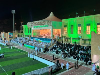 واشتمل الحفل على قصائد شعرية و(أوبريت) بعنوان: (نحلم ونحقق) كلمات الشاعر : عبدالله الشريف وأداء فرقة الواديين وفرقة بني مليك وقُدمت فيه لوحات فنية جسدت معاني الطموح الذي تعيشه السعودية،وفق مستهدفات الرؤية الوطنية الطموحة رؤية السعودية2030م.