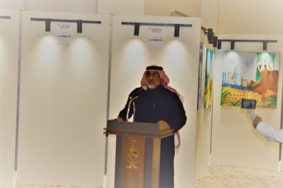 وقد بدأ الحفل بكلمة ترحيبية ألقاها رئيس نادي عناقيد للفنون البصرية الأستاذ| عايض ابو زيد رحب من خلالها بالحضور الكريم وأثنى على مشاركة الفنانين والفنانات التشكيليين الذين ساهموا في إبداعاتهم ومشاركاتهم التي جسدت الروح الوطنية المعبرة في لوحاتهم الفنية تواكبا مع رؤية سمو سيدي ولي العهد