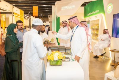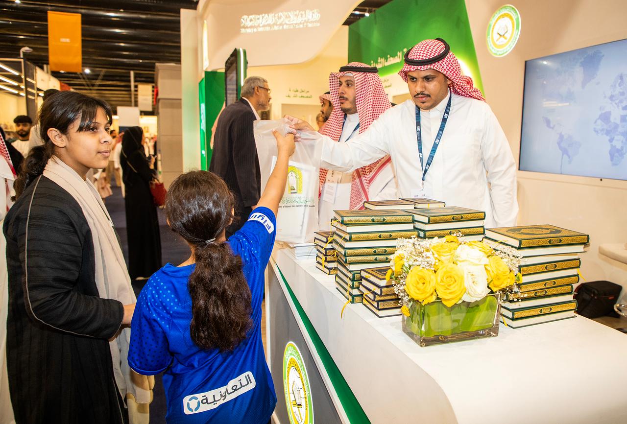تواصل وزارة الشؤون الإسلامية والدعوة والإرشاد مشاركتها بمعرض الرياض الدولي للكتاب، الذي يقام في جامعة الملك سعود خلال الفترة من 28 سبتمبر وحتى 7 أكتوبر 2023م، حيث قدمت منذ افتتاح المعرض أكثر من 6 آلاف نسخة من القرآن الكريم من إنتاج مجمع الملك فهد لطباعة المصحف الشريف بالمدينة المنورة، هدية لزوار الجناح الذين يمثلون مختلف شرائح المجتمع، ومن جنسيات متعددة.