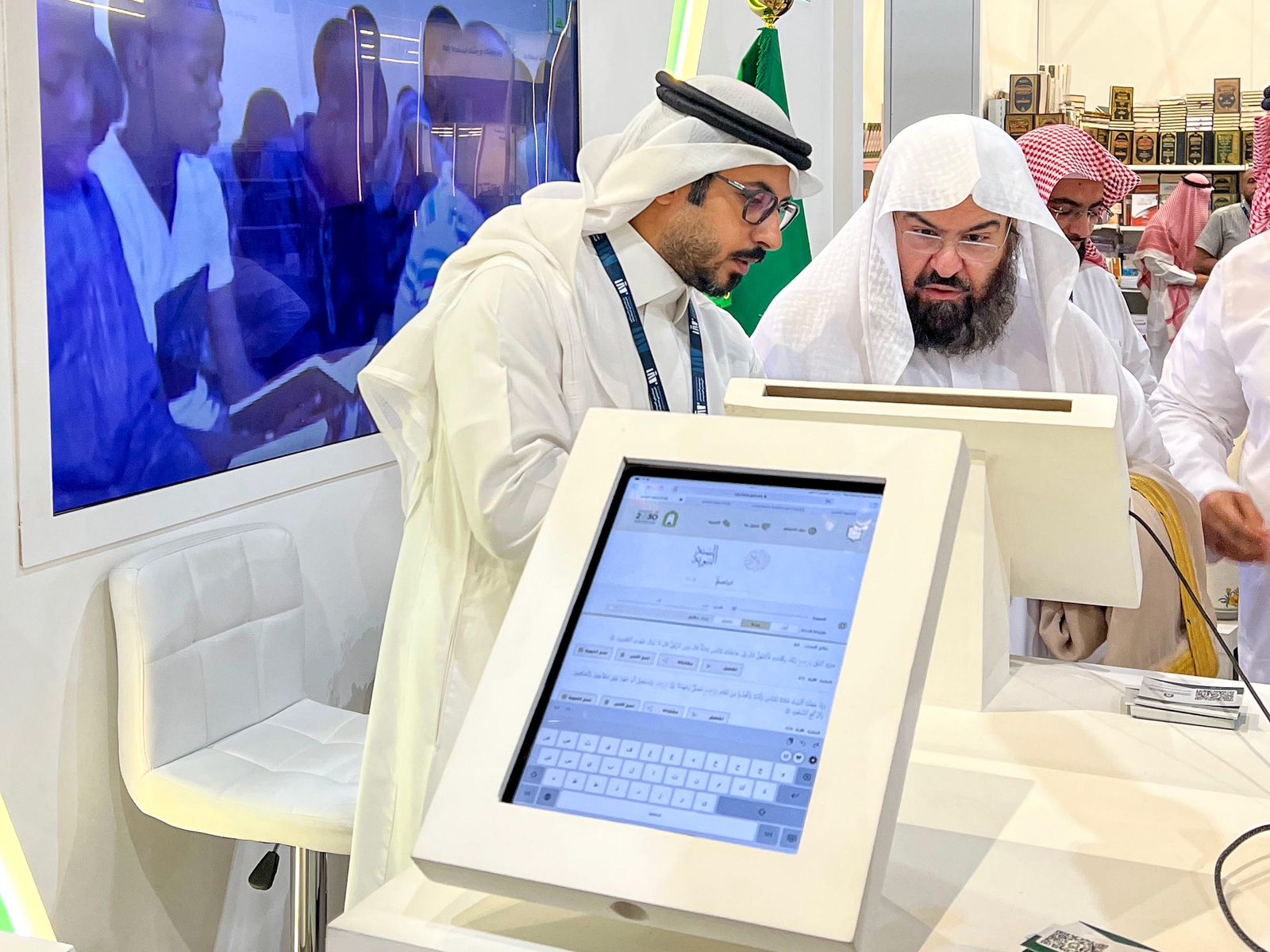 كما تم عرض شاشات المكتبة الإسلامية الإلكترونية الرقمية التفاعلية التي وضعت لزوار المعرض، والتي تحتوي على 51 لغة، حيث تم توزيع أكثر من 10 آلاف بطاقة تعريفية، وتحميل 15.360 مادة علمية؛ إضافة لعرض مخطوطات مكتبة مكة المكرمة، وكذلك عرض للمحتوى التفاعلي لأعمال الوزارة.