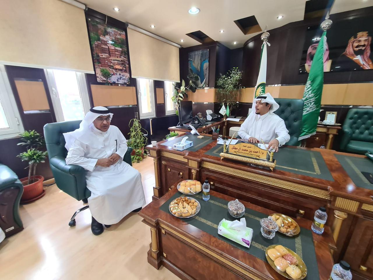 استقبل مدير عام فرع وزارة البيئة والمياه والزراعة بمنطقة عسير المهندس احمد بن محمد آل مجثل بمقر الفرع رئيس المؤسسة العامة للري الدكتور فؤاد آل الشيخ مبارك بمشاركة عدد من مسؤولي الجهتين، واستعرض رئيس المؤسسة آلية نقل الاختصاصات الموكلة إليها حديثاً وخططها المستقبلية في تقديم خدمات الري للحيازات الزراعية المختلفة وتعظيم الاستفادة مياه السدود والمياه المجددة بمنطقة عسير كما تمت الاشارة إلى تجارب وخبرات فرع الوزارة بعسير فيما يخص تشغيل وصيانة السدود وبرنامج تأهيل المدرجات الزراعية وطرق الري المستخدمة.
