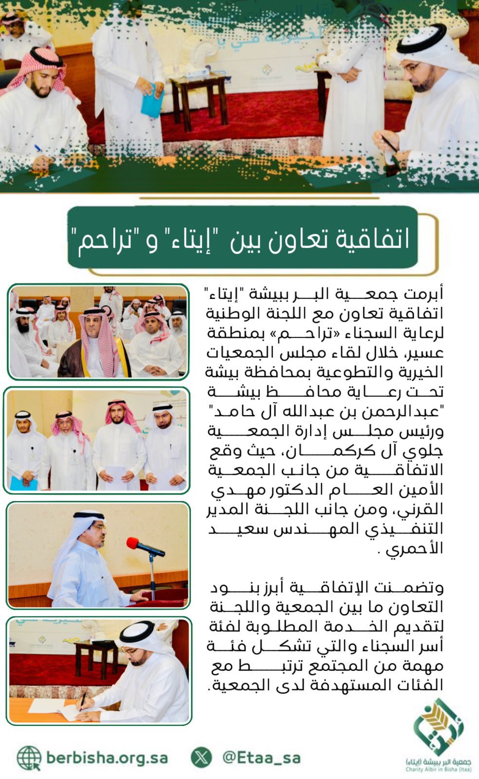 أبرمت جمعية البر ببيشة “إيتاء” اتفاقية تعاون مع