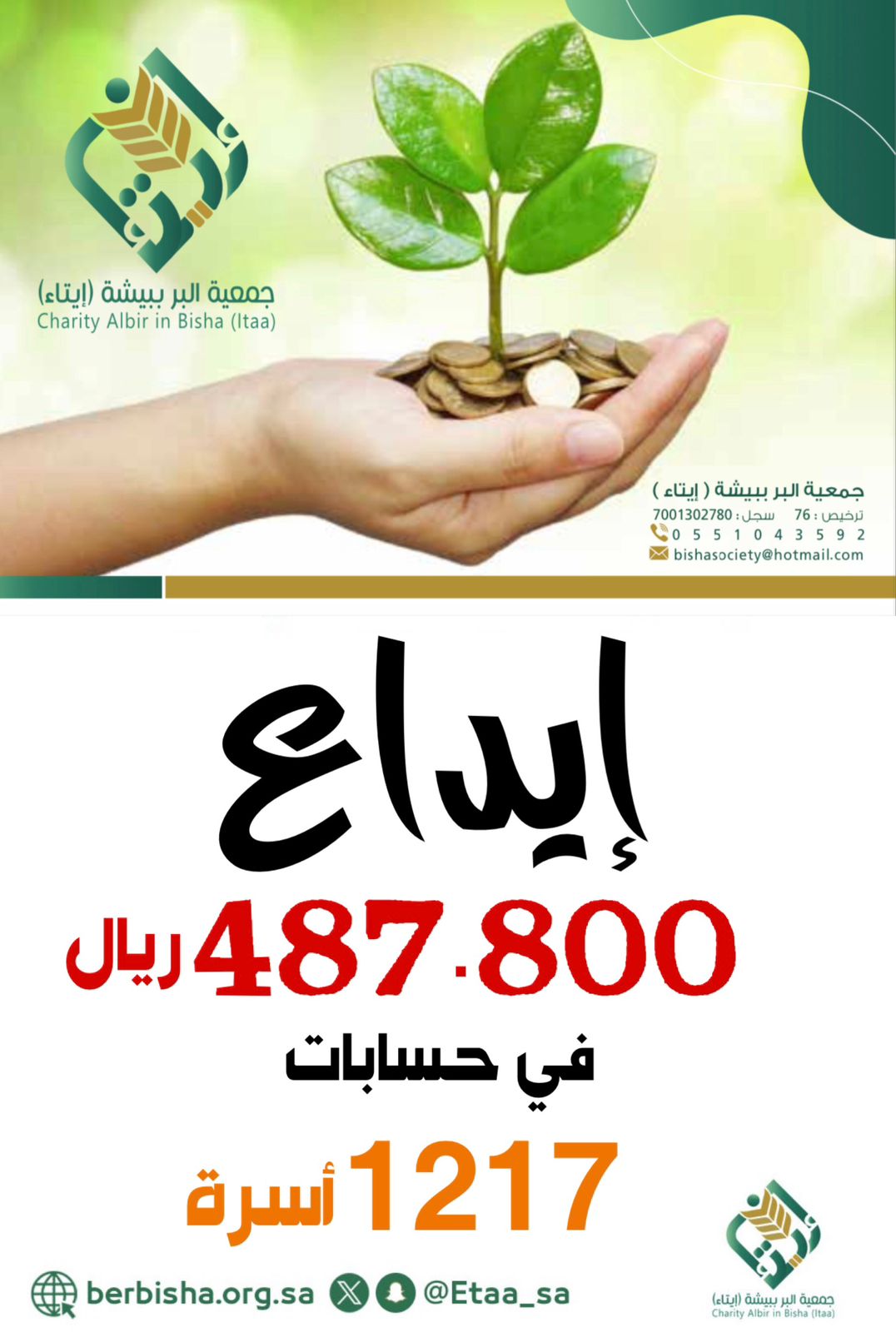 أودعت جمعية البر بمحافظة بيشة “إيتاء”، مساعدات مالية للأسر التابعين للجمعية وذلك في حساباتهم البنكية.