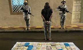 قبضت الدوريات البرية لحرس الحدود في قطاع الدائر بمنطقة جازان على مخالف لنظام أمن الحدود من الجنسية الإثيوبية، لمحاولته تهريب (41) كيلوجرامًا من مادة الحشيش المخدر، وجرى استكمال الإجراءات النظامية الأولية بحقه، وتسليمه والمضبوطات لجهة الاختصاص.